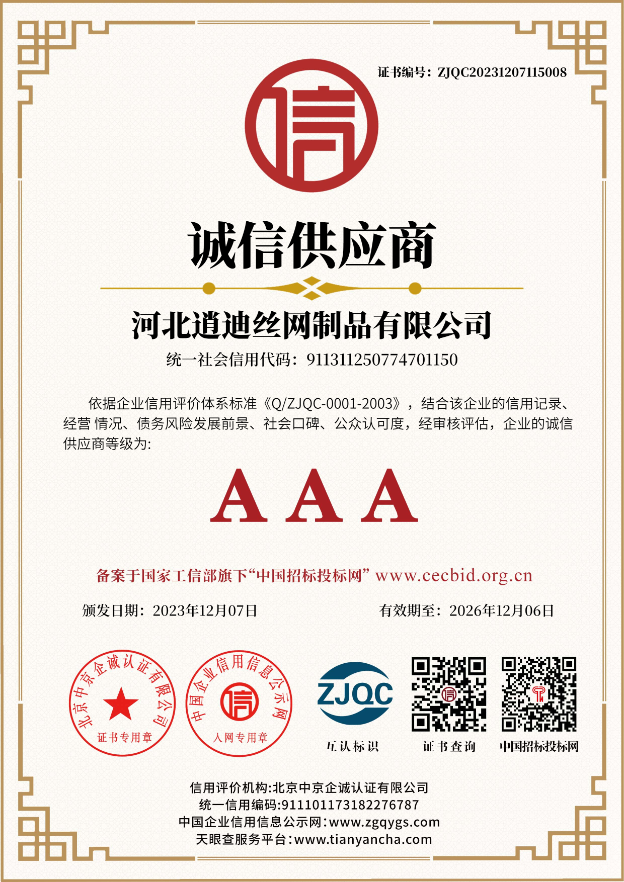 河北逍迪絲網制品有限公司誠信天下,誠信是我們公司一個原則問題不可撼動的,以心中有誠信的思想結交五湖四海的朋友,能達到雙贏是最好的,我們堅信朋友多了路好走,我們公司都是老朋友多,我們一直是這樣做的。河北逍迪絲網制品有限公司成立于2013年注冊資本壹仟伍佰萬整,主要生產沖孔網,鋼格板,金屬防蟲網,如實的實體廠家,是一家-研發-銷售-生產-安裝-售后一條龍公司,2019年通過了ISO 9001認證管理體系符合GB/T 19001-2016/ISO 9001:2015標準,同時通過了SGS認證,擁有商標版權2品牌,擁有一個著作版權,河北逍迪絲網制品有限公司位于中國有名的(絲網之鄉)安平縣,于天津,北京,雄安,石家莊相鄰,交通非常發達,出口可以選擇天津港口非常近每天都有接貨送貨往返車輛,空運可以選擇石家莊正定機場,附近也有鐵路運輸,當地還有兩個生態物流園區發往全國各地,我們沖孔網工廠生產設備有:普通沖壓機,高速沖壓機,自主研發小微孔沖壓機,龍門沖,磚塔沖孔,重型沖孔機,萬瓦級別激光切割機,3000W激光切割機,焊接設備,折彎機,校平機,剪板機,精密校平機,(對板面平整度要求苛刻的客戶群體0.5-0.2誤差)我們公司銷售市場沒有局限性國內國外都供應,擁有出口權...